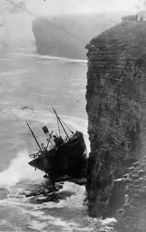 The wrecked trawler was visited on Sunday by a number of people from Stromness who report that the vessel has been washed higher up on the rocks, which are large and flat as a table. So far as is known, she is undamaged and it is hoped to salve the vessel should the weather keep favourable. We understand the vessel is so close to the cliff edge that she cannot be seen from above.
