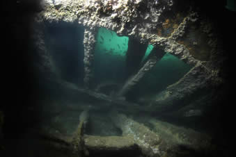 Tabarka. 2,642-ton steamer built in Rotterdam. Originally sunk in Kirk Sound, she was moved to her present position by the Royal Navy in 1940. Lying upside down in 12-15 metres of water off the Inverlane. One or two holes that have been blasted in her hull allow access to the wreckage, and the boiler room and engine rooms can be accessed through the bulkheads. Many of her internal workings can still be seen. Most of the dive is spent inside the wreck. A strong tidal stream through Burra Sound means she can only be dived at slack waters. This is a favourite dive and has been likened to diving in a cathedral with all the light pouring through its many holes.